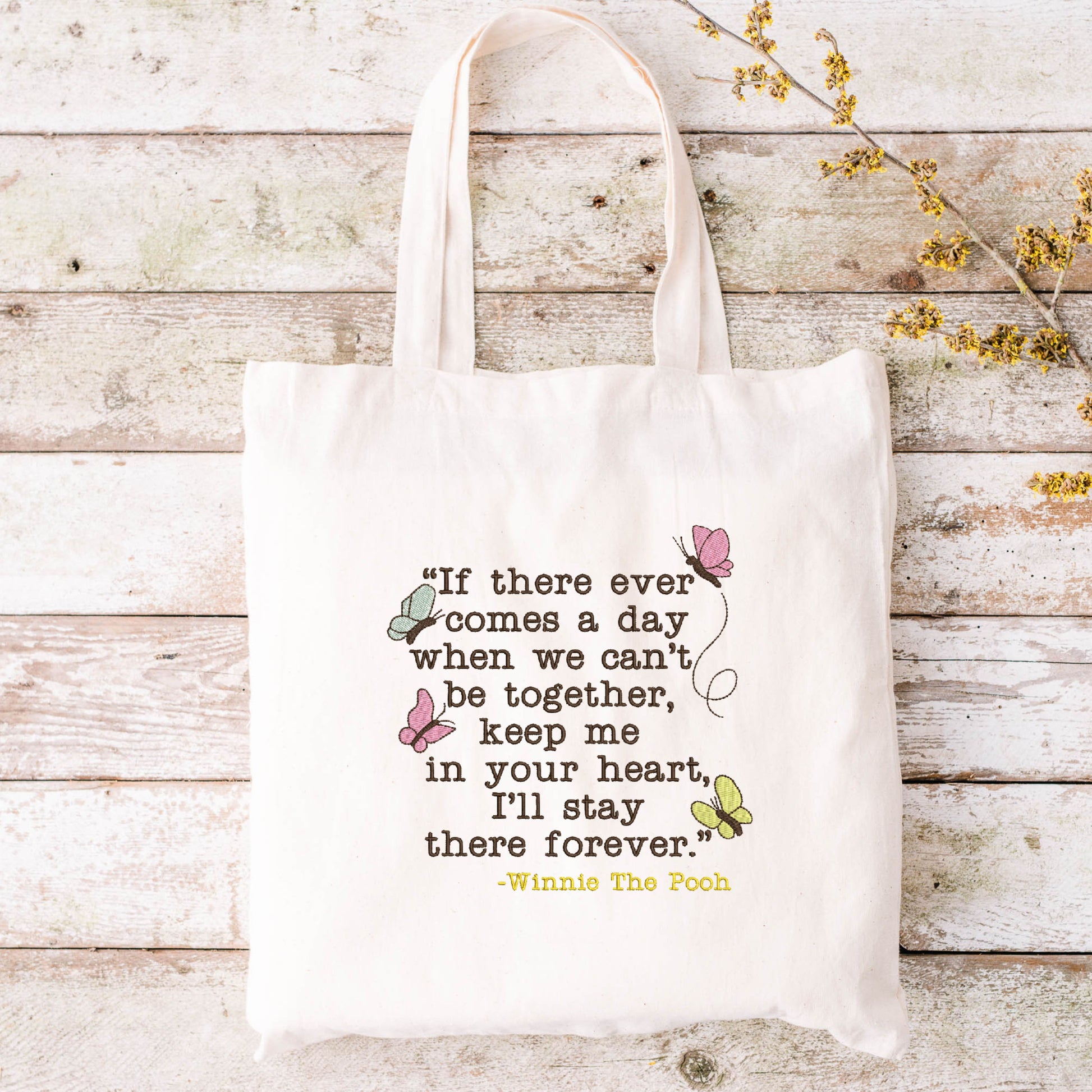 This classic Winnie The Pooh Embroidery Design adds a timeless touch to any project. Perfect for craft projects and apparel, this embroidery design features a Classic Pooh quote. This heartwarming quote from Pooh bear captures the essence of love and cherished memories. Stitch it onto baby blankets, nursery decor, or tote bags for a sweet touch. It's the perfect way to give any project an extra bit of whimsy and charm. Also, the perfect touch for any classic Winnie-The-Pooh fan!