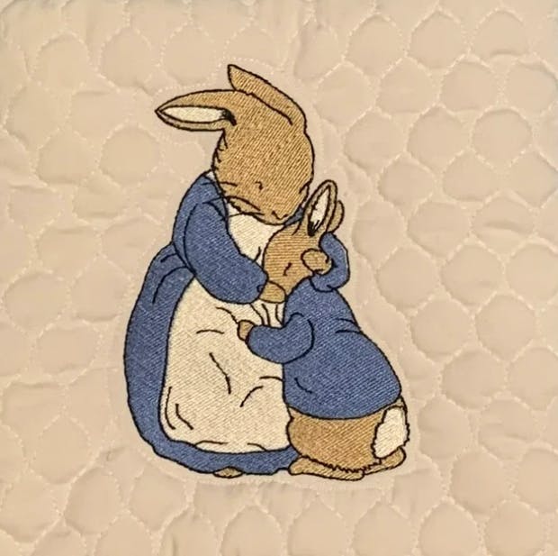 Embark on a stitching journey with the heartwarming Peter Rabbit Mother's Love Embroidery Design. This design captures the tender moment between Peter Rabbit and his mother, as seen in Beatrix Potter’s cherished children’s book. It’s a beautiful scene that will bring warmth and comfort to any embroidery piece.