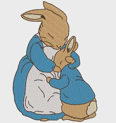 Embark on a stitching journey with the heartwarming Peter Rabbit Mother's Love Embroidery Design. This design captures the tender moment between Peter Rabbit and his mother, as seen in Beatrix Potter’s cherished children’s book. It’s a beautiful scene that will bring warmth and comfort to any embroidery piece.