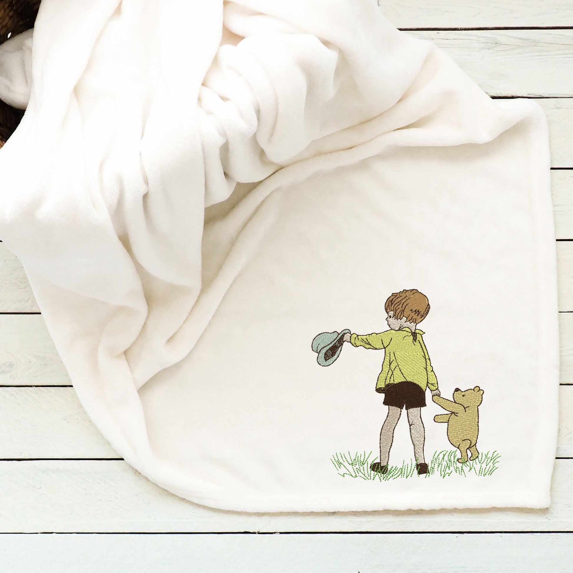 Bring a touch of timeless childhood magic to your next project with this beautifully detailed Classic Winnie-the-Pooh machine embroidery design. Inspired by the beloved vintage illustrations, this design captures the sweet friendship between a Christopher Robin and his beloved Pooh bear. Perfect baby blankets, onesies, children’s clothing, wall art, and handmade gifts. Bring nostalgia and charm to your projects, one stitch at a time!